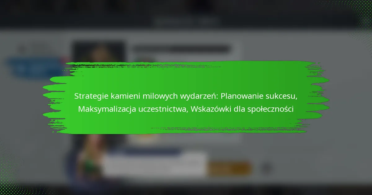 Planowanie udanych kamieni milowych wydarzenia wymaga strategicznego podejścia, które obejmuje ustalanie jasnych celów, tworzenie szczegółowego harmonogramu i angażowanie interesariuszy. Skupiając się na maksymalizacji uczestnictwa poprzez